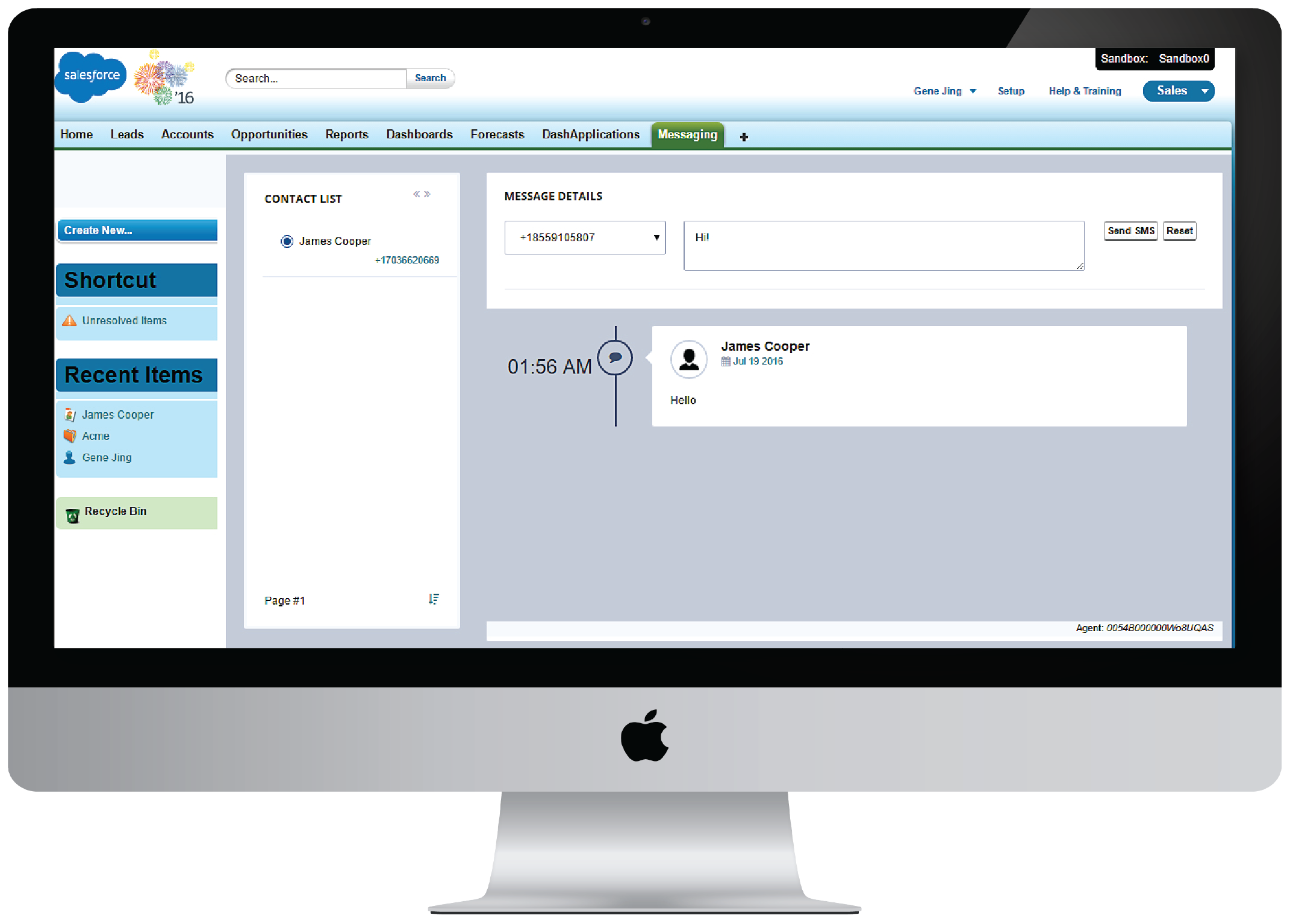 It incorporates a 2-way text messaging system into your EXISTING business phone numbers to deliver a fast and convenient way to communicate with your customers. Sales, service and other professionals can easily send and receive SMS texts from their desktops and mobile devices, and save text message conversations to Salesforce.